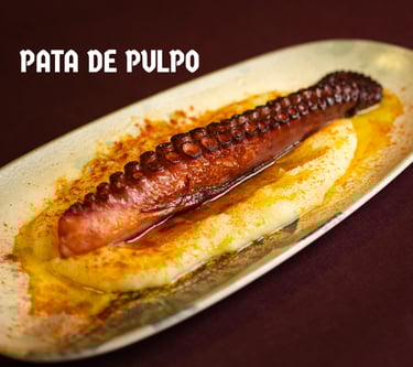 PATA DE PULPO CON PURÉ DE PATATAS Y CORTEZAS DE TORREZNO