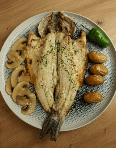 Pero no pienses que solo ofrecemos carne, nuestro pescado también está delicioso, casi como si acabara de salir del mar.